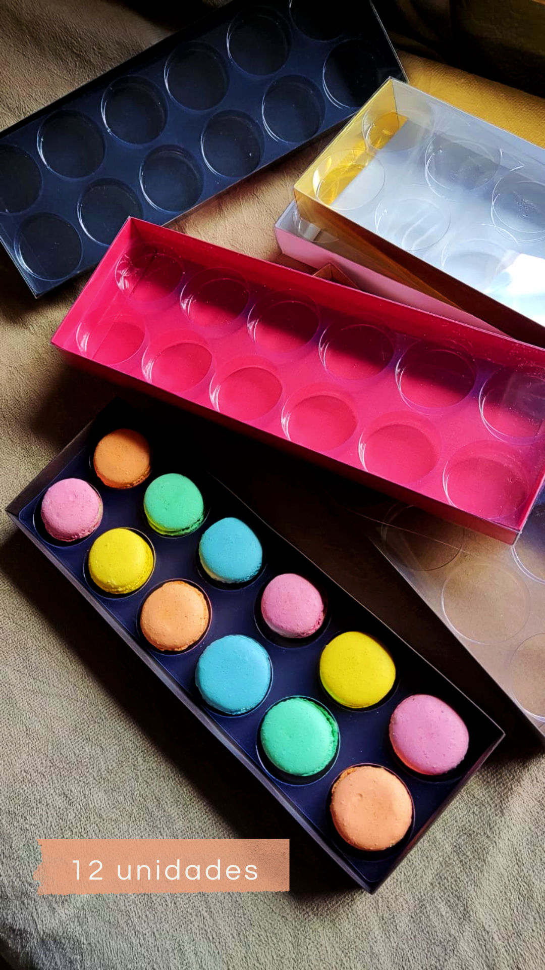 Caixa Colors 32X10,5X3 p/ 12 Macarons c/ Berço – Coleção By May