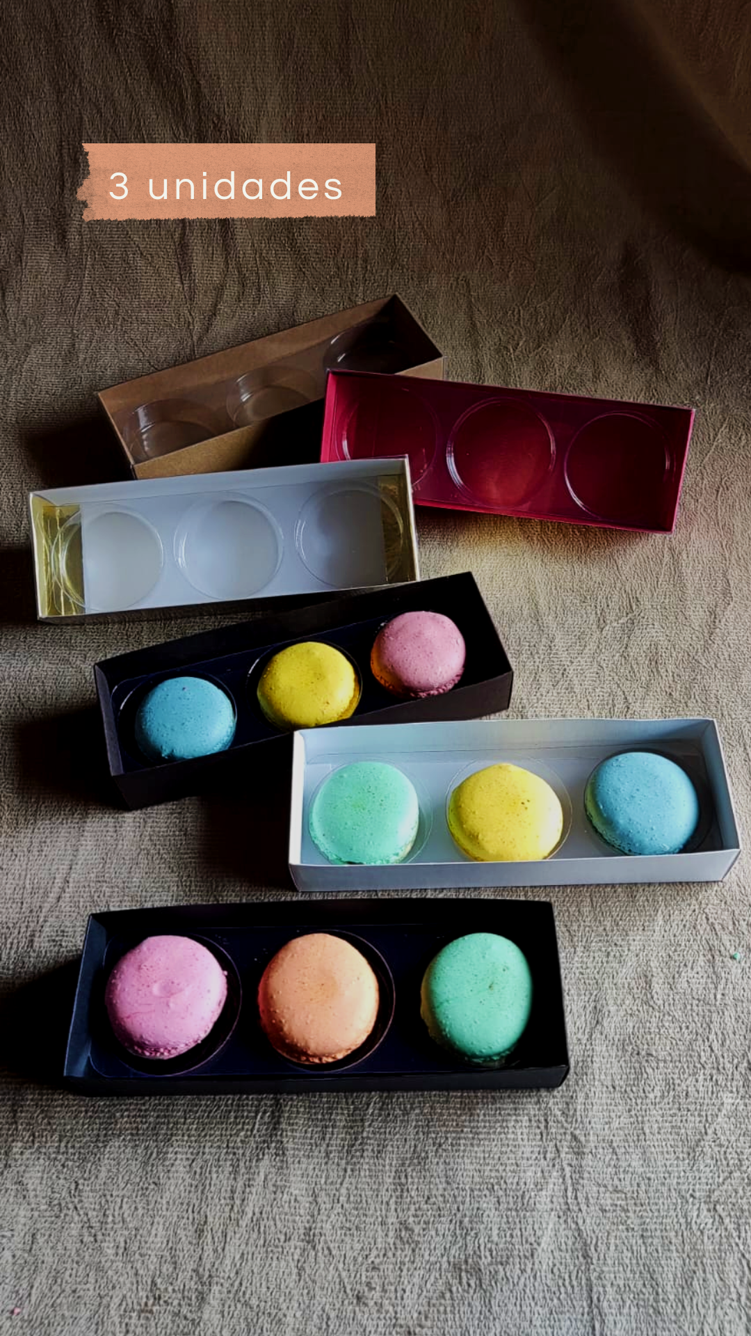 Caixa Colors 16X5,5X3 p/ 3 Macarons c/ Berço – Coleção By May